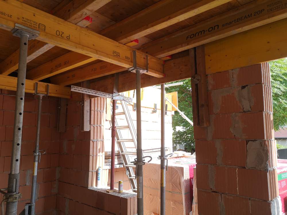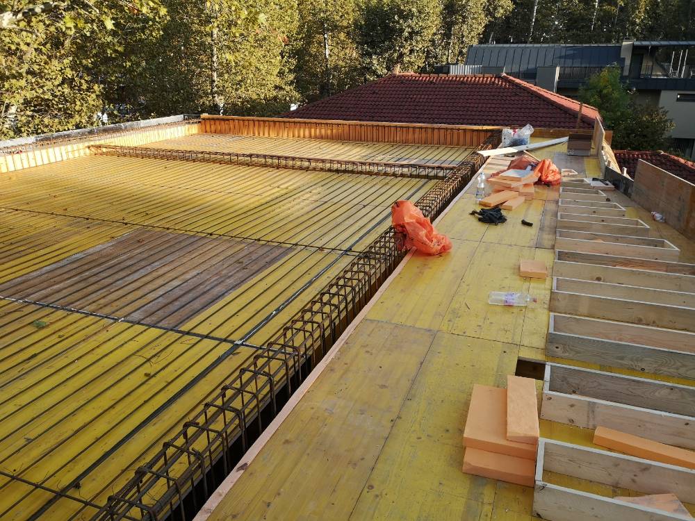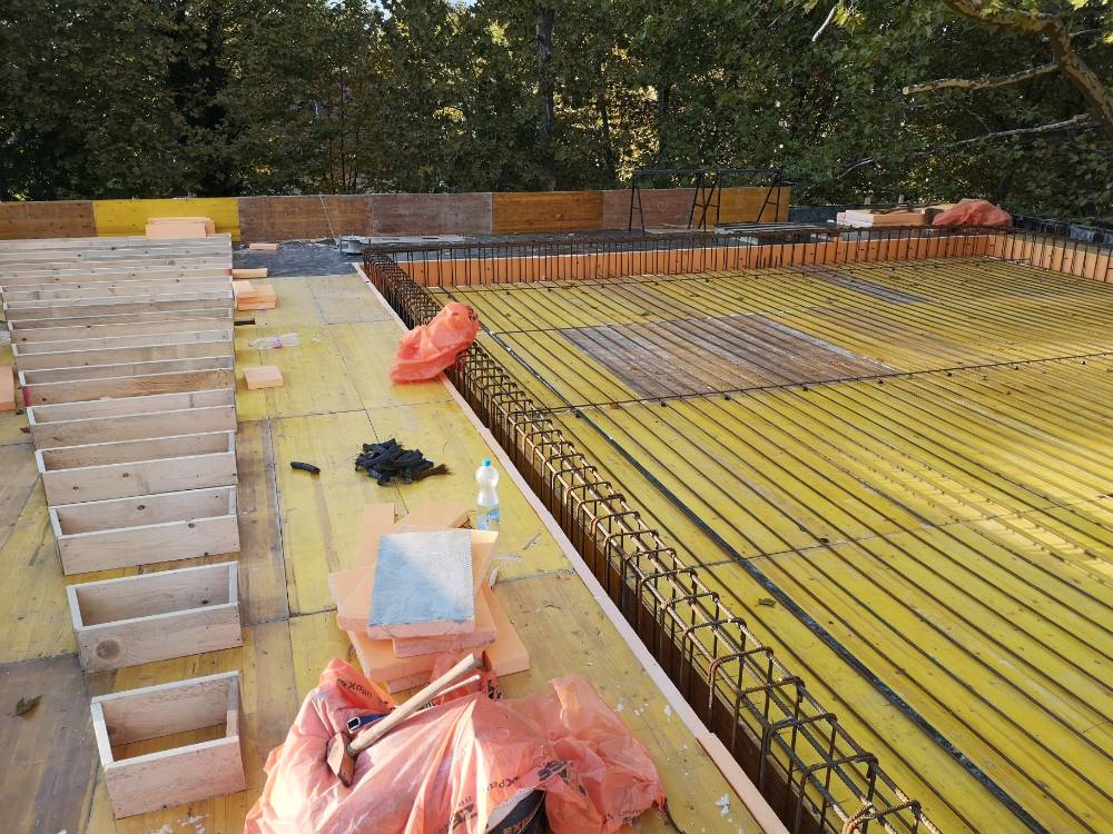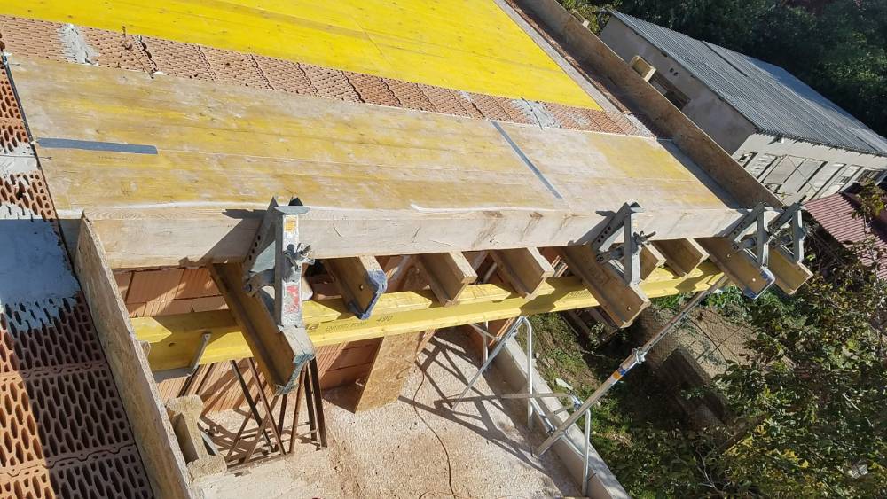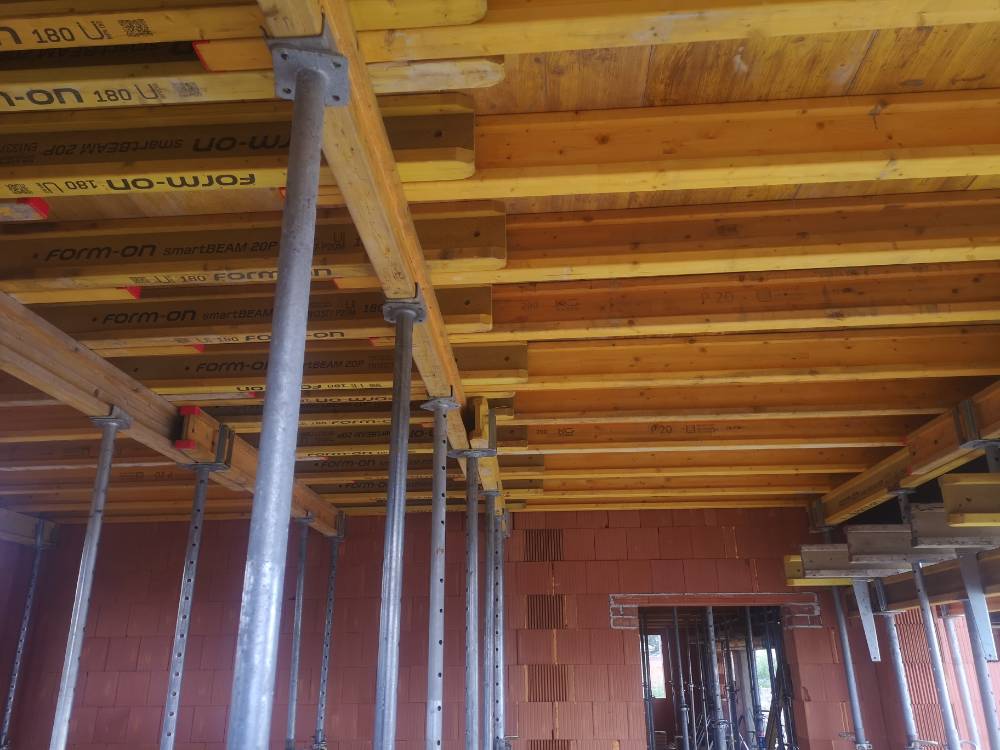 130 m2 monolit födémszerkezet, koszorú, áthidalók zsaluzása fathartós rendszerrel.
