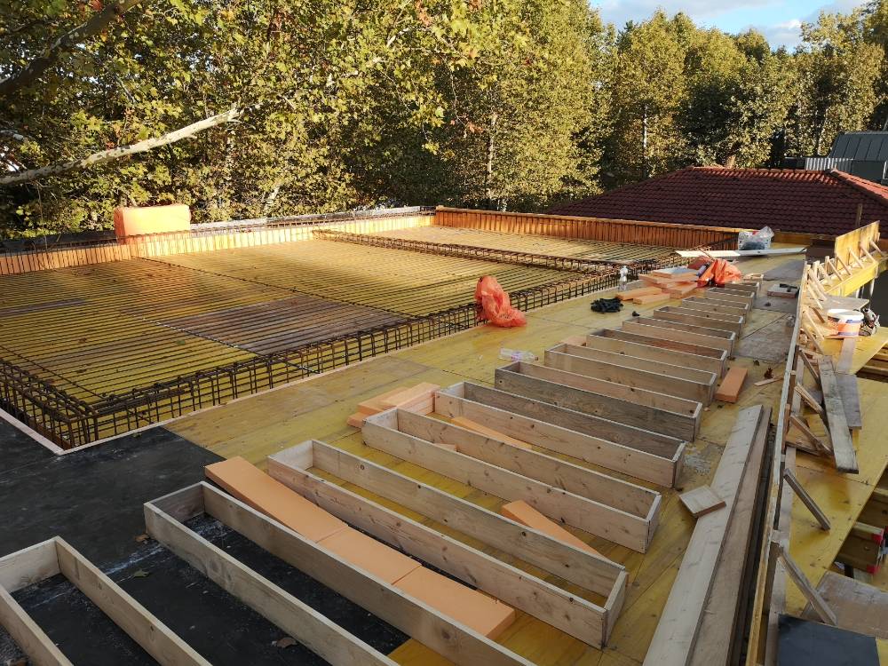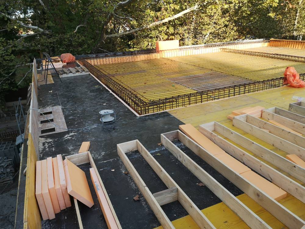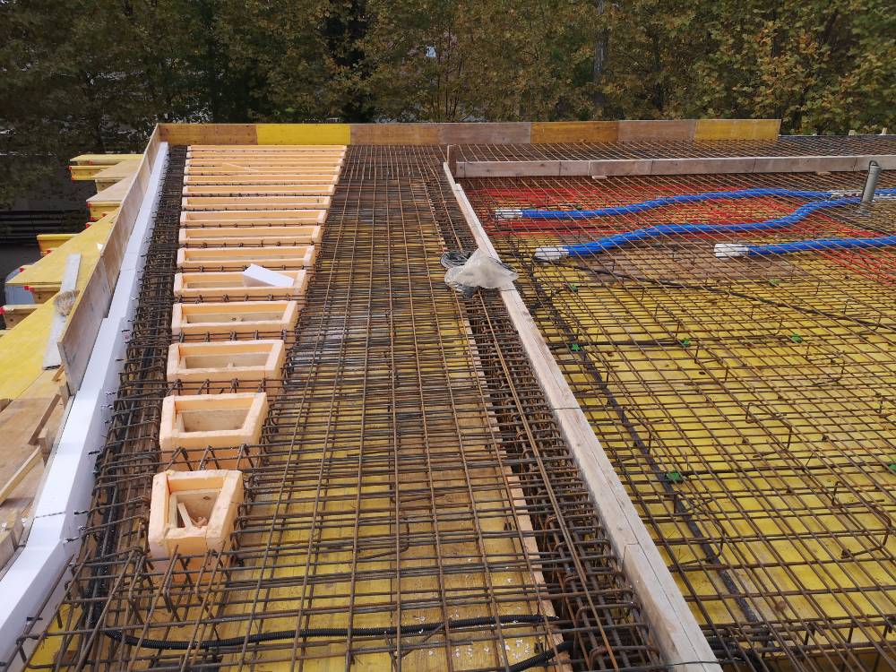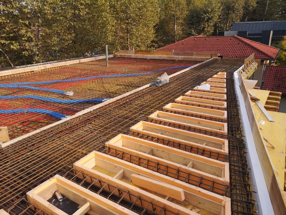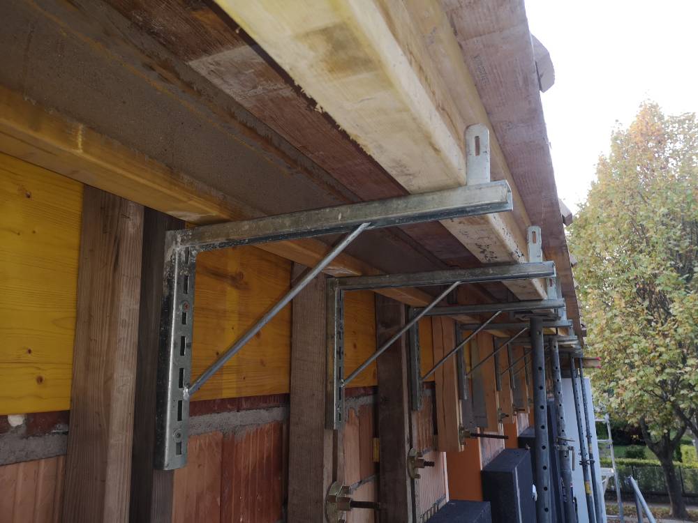 130 m2 monolit födémszerkezet, koszorú, áthidalók zsaluzása fathartós rendszerrel.