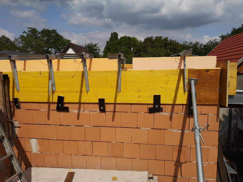 80 folyóméter koszorú és áthidaló zsaluzása, betonozása.
