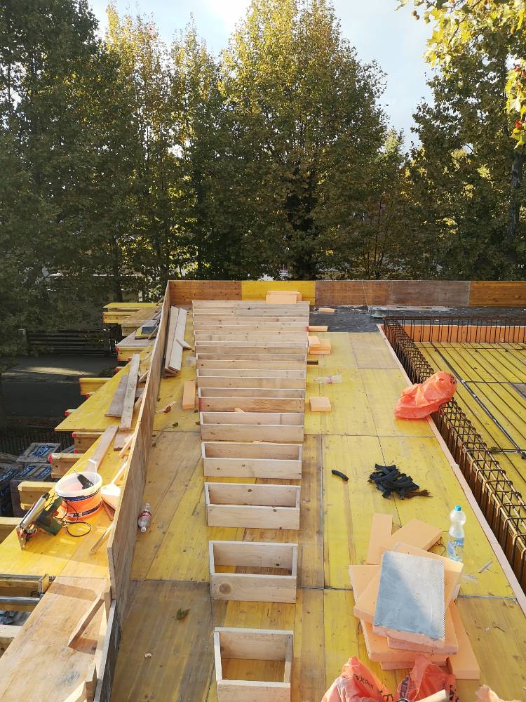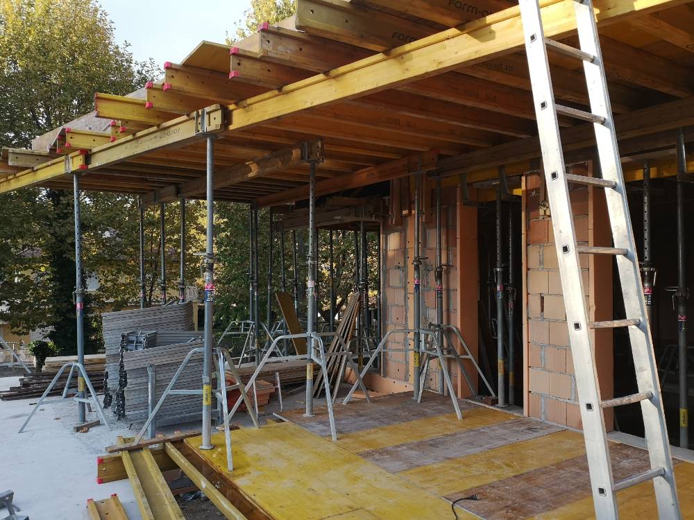 400 m2 monolit födémszerkezet zsaluzása fathartós rendszerrel, lépcső zsaluzása