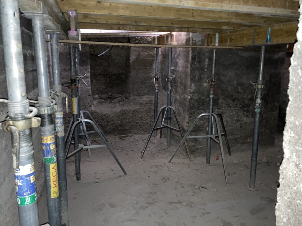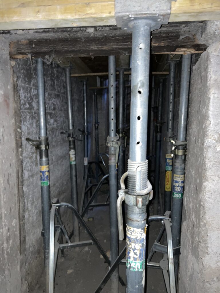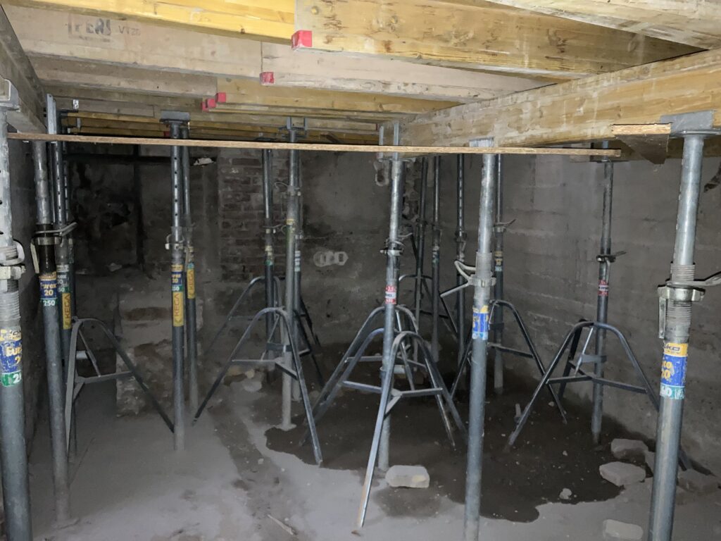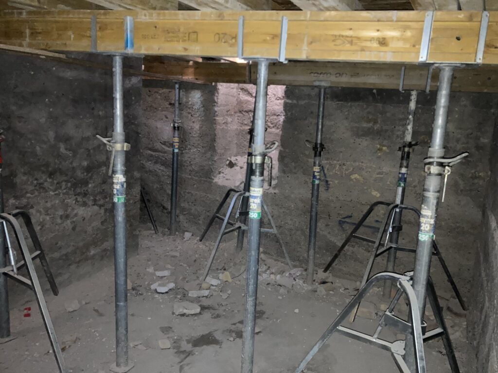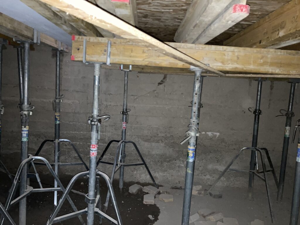 Ideiglenes alátámasztás építése a meglévő pinceszint feletti födémhez